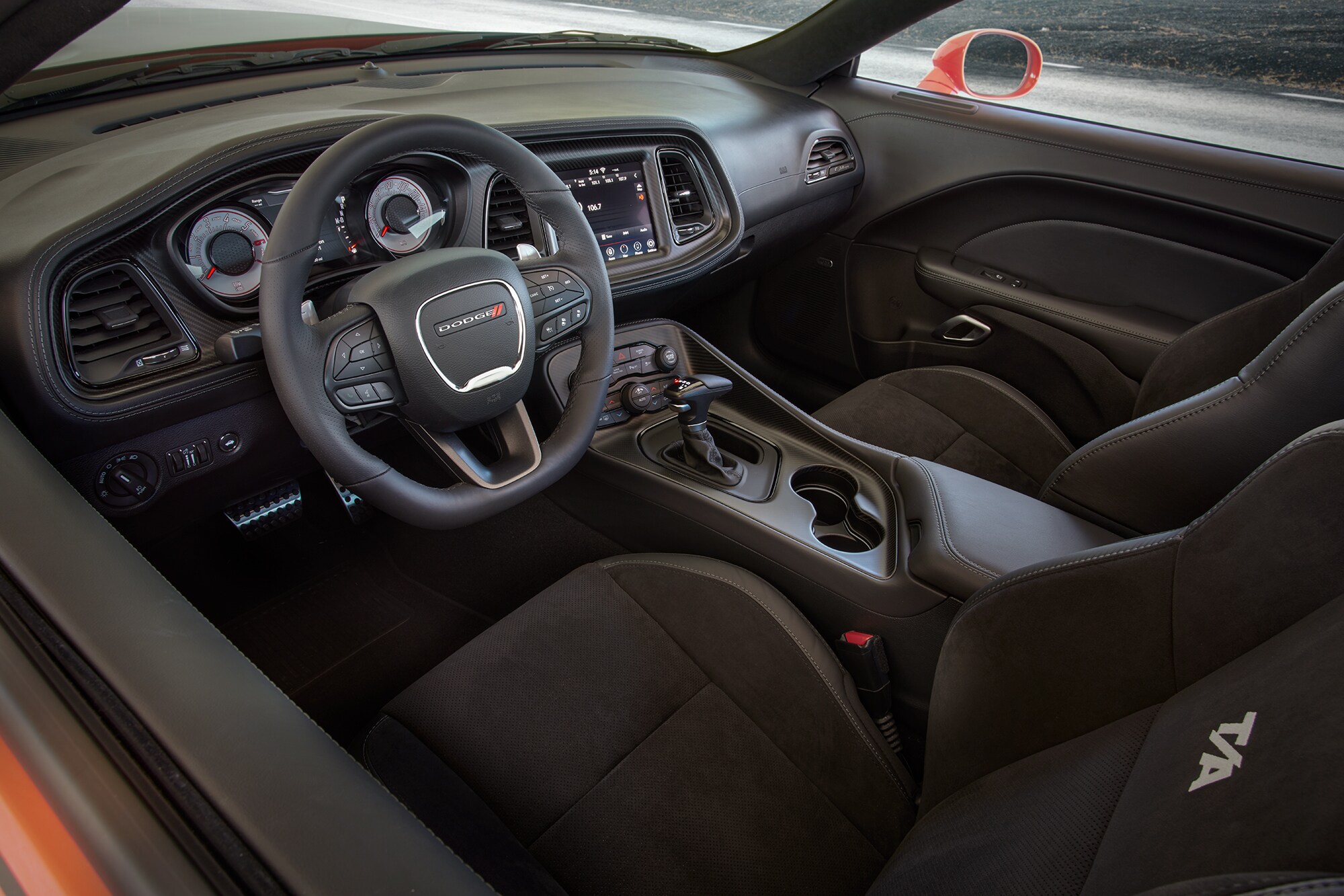 The exterior retains its supreme looks, special badging, the classic hood, and specialized tires that range from 19-20 inch depending on the trim. The Challenger has room for five occupants. In addition to the spacious interior, the Challenger also has performance seats, an air filtration system, climate control, USB ports, convenient cup holders, a center box, and plenty of room to stretch during those long excursions.